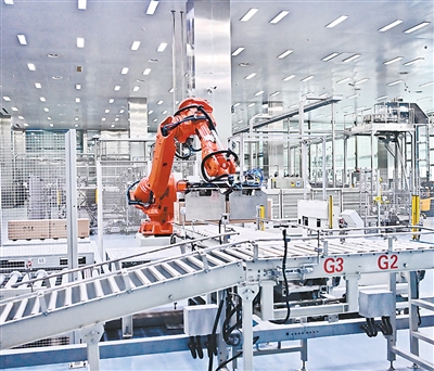 江西省南昌市积极引导企业布局智能制造设备,让科技赋能生产全链条、全领域,通过引进搭载智能制造数字“大脑”平台、智能机械臂、自动导引车、工业互联网等新设备和系统,推动企业提升竞争力和发展能级。图为华润江中湾里制造基地(江中药谷)车间内,智能机械臂进行作业。朱海鹏摄(人民视觉)