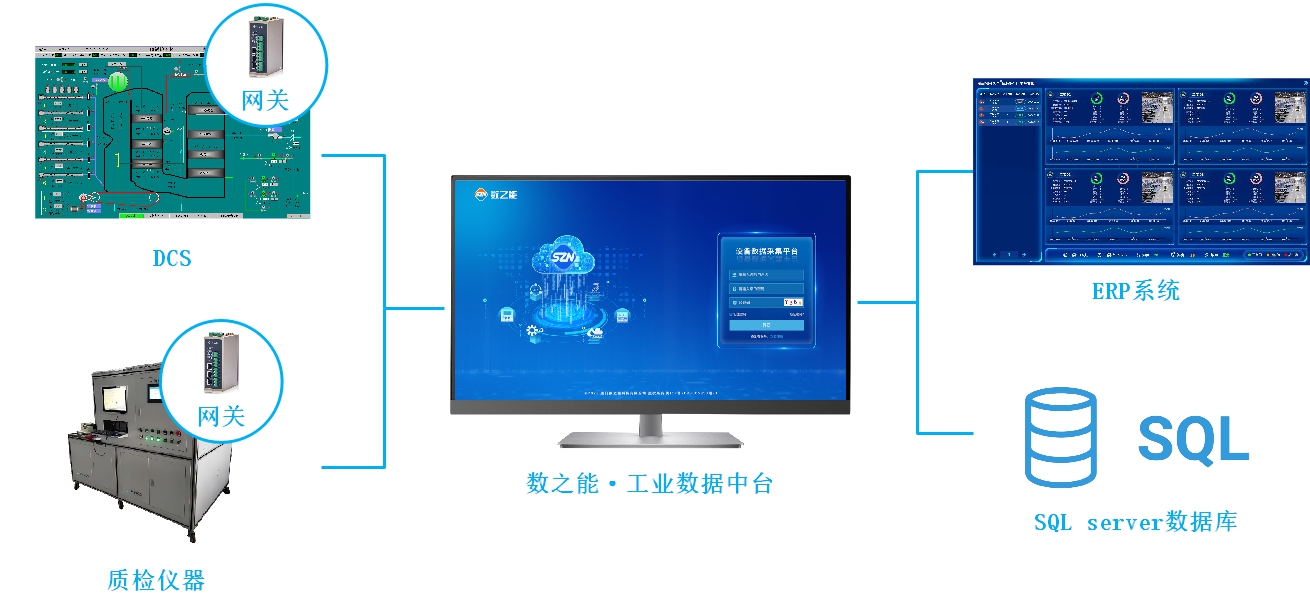 1、全面接入DCS系统、真空浇注机、固化烘箱、质检仪器等设备,实时采集设备数据并实现协议转换与标准化输出,快速对接ERP系统和SQL数据库中。