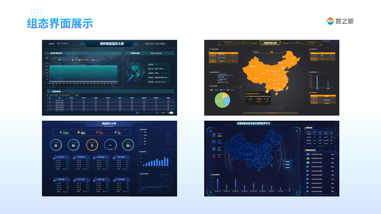 数之能工业组态数据云平台提供丰富的可视化组件,包括图形、报表、开关、视频等,支持拖拉拽与编辑操作,从而为不同领域、不同需求的工业场景构建全流程、多维度的可视化体系提供可靠帮助,实现远程监控、故障告警、远程控制、运维管理与数据分析等功能,为企业生产效率提升、运维成本降低提供坚实保障。