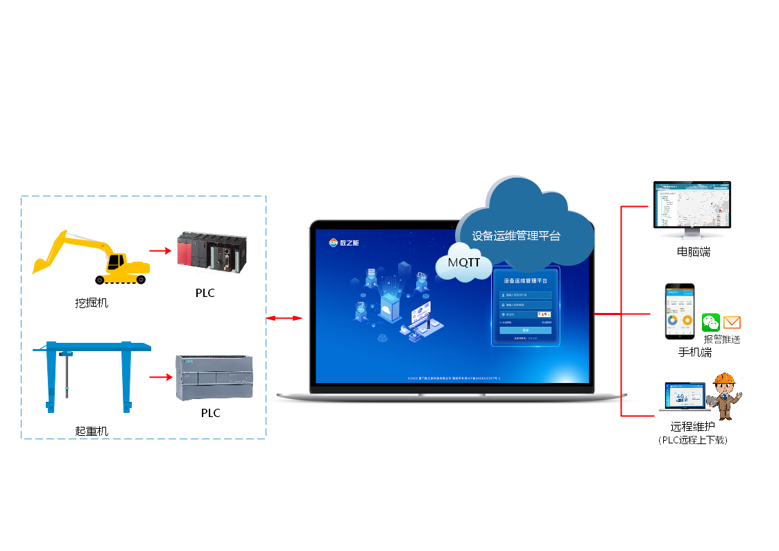 通过在新能源工程机械上部署智能网关,能够实时采集设备全维度运行数据再上传至数之能设备运维管理平台,实现设备状态监控、故障预警、远程运维、智能派单等全流程运维管理,能够实现对全国各地设备的远程实时监控与在线管理,及时发现异常故障并快速进行维护,进一步提升工作效率与运维质量。