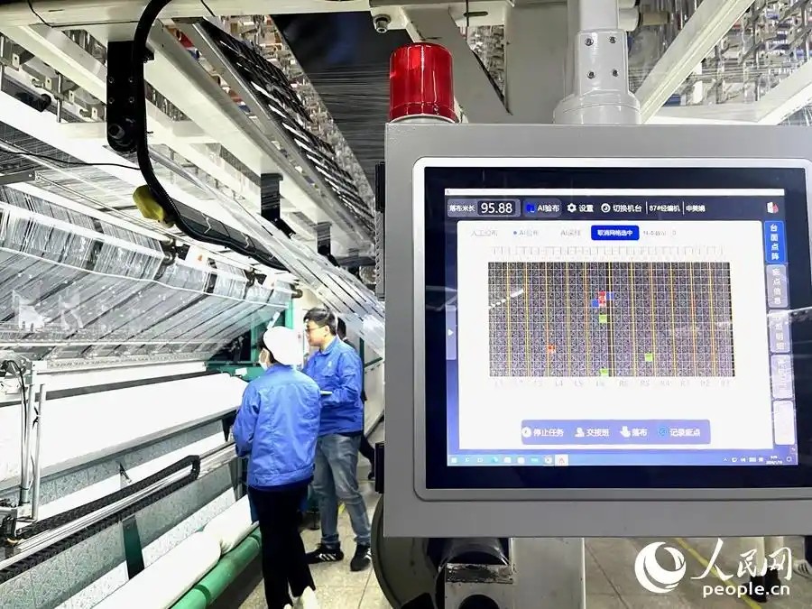 在福州新区(长乐区)一家企业,AI智能检测系统正在检测针纺坯布上的瑕疵。人民网记者 陈蓝燕摄