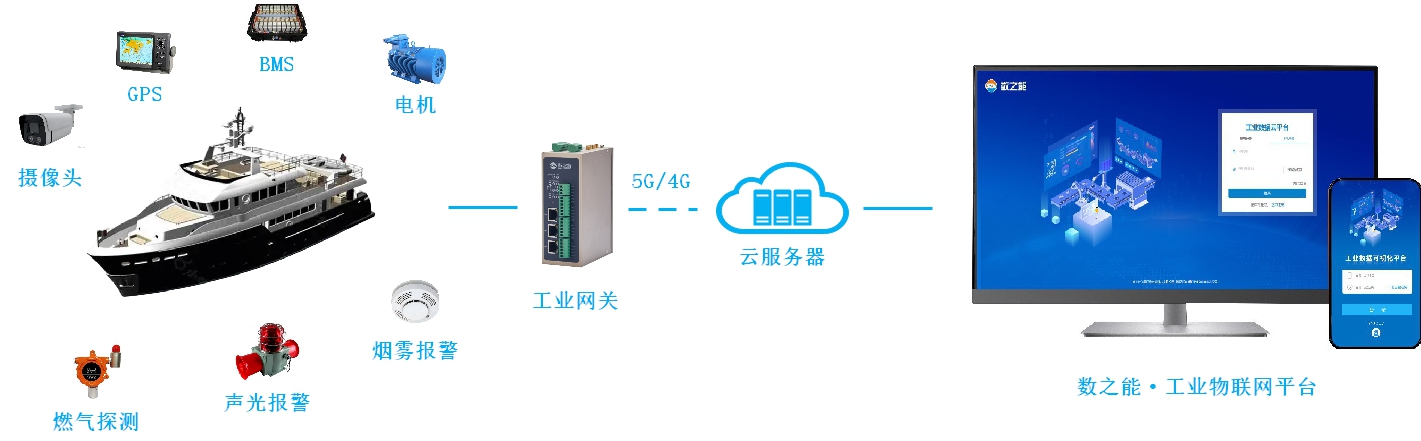 对此,数之能通过云端部署工业物联网平台,能够全面接入电动船舶中的锂电池组BMS、电机、环境传感器、GPS模组、摄像头等设备,构建电动船舶多维度数据的可视化界面,为运营企业提供远程监控、故障告警、设备管理、运维工单、报表统计、数据分析等功能,打造高效可靠的电动船舶监控管理系统,助力企业实现精细化、智能化、数字化管理升级。